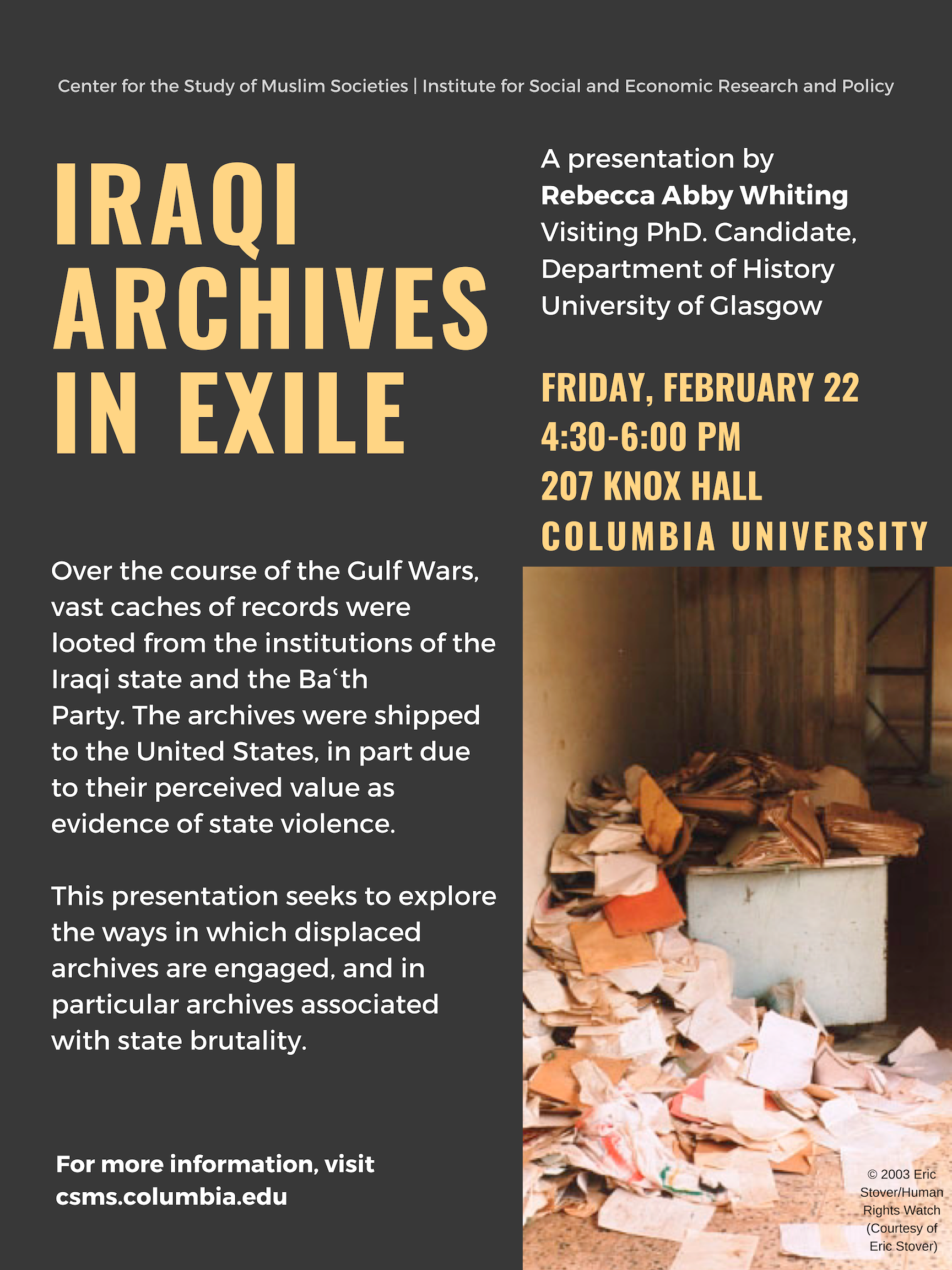 Iraqi Archives in Exile: A presentation by Rebecca Abby Whiting